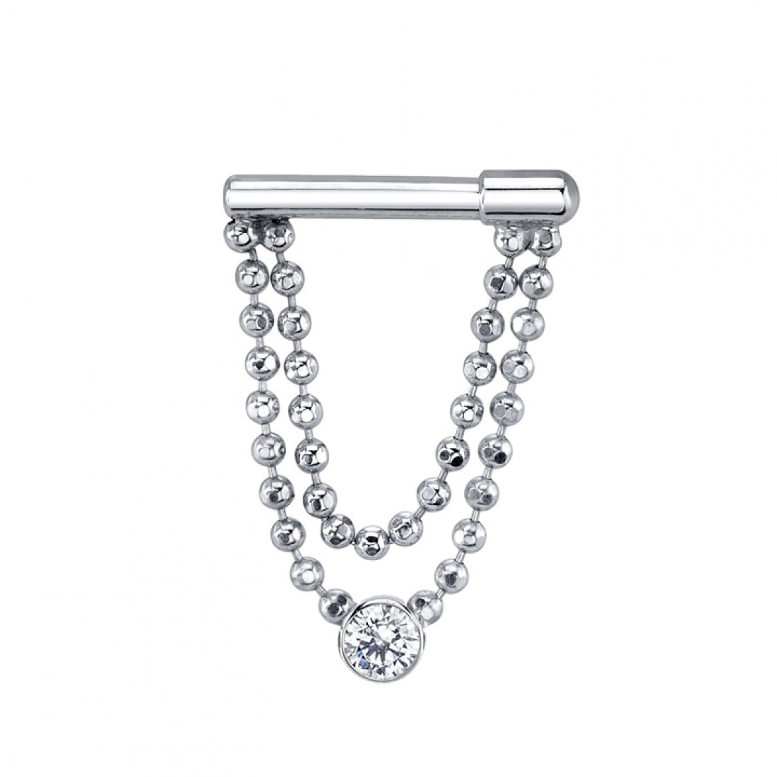 Size | 16g with 1/4" straight wearing surface and graduated lengths of 1mm beaded chain with fixed bezel
